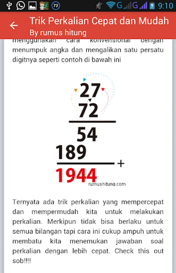 Application of a mathematical formula is designed with an appealing look that sederhanan and unambiguous so easy for my friend use. Matetika material in it will keep updating every week and do not miss a friend can interactively ask Homework (PR) or school work through a question and answer page. Our team of rumushitung.com will help as much as possible.