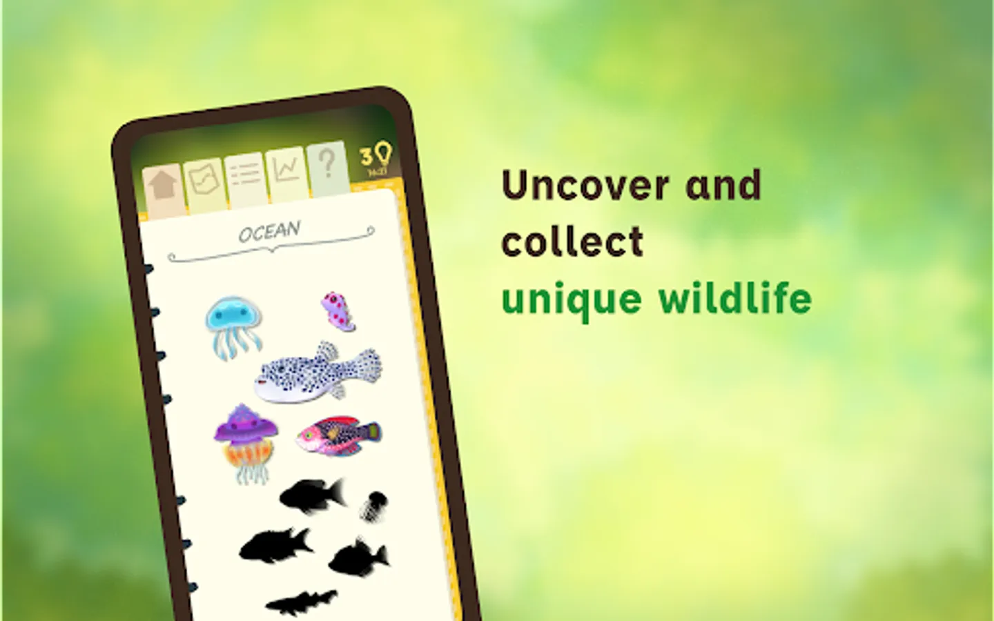 Embark on a journey of discovery in this cryptogram for nature lovers. Open your journal and explore different worlds to decrypt interesting facts about the wildlife living there. Test your puzzle-solving skills by deciphering the facts, and see how quickly you can uncover each new species for your collection.