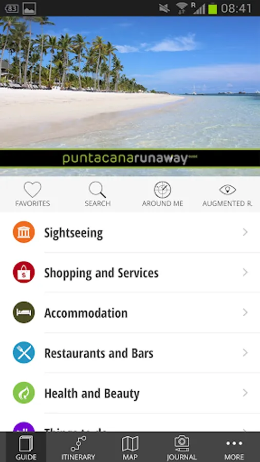 Augmented reality: you can view the places of interest near you using the Punta Cana Runaway guide screen. Traveling through augmented reality means having a world of interactive information at your fingertips, simply by using your smartphone.