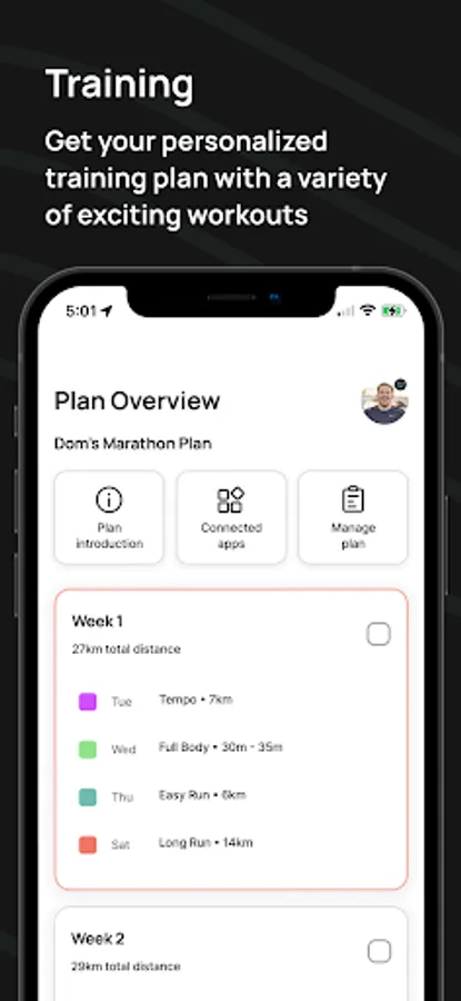 Complement your running with personalized strength and conditioning support that fits alongside your running plan