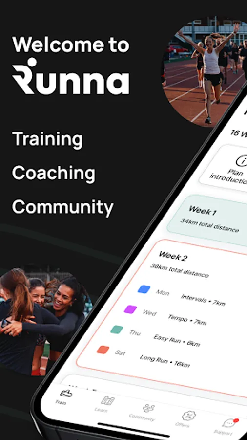 Runna is a personal running coach in your pocket. We provide world-class training, coaching and community for everyone, whether you're doing a couch to 5k plan or training for your first marathon. Find out why we're rated 4.99/5 on Trustpilot.
