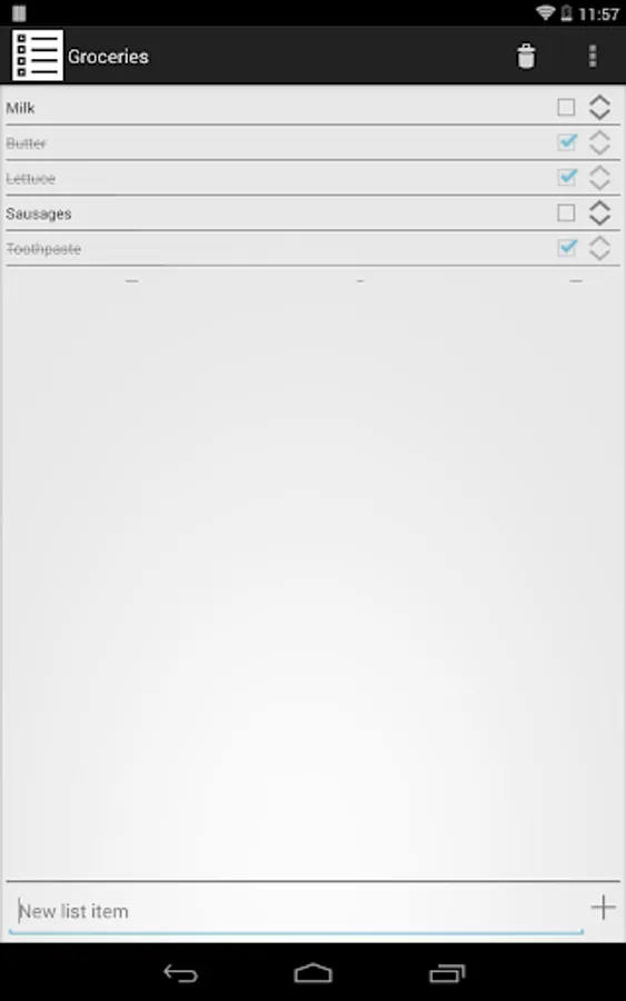 Duplicating lists lets you create templates. With this you can start creating you grocery list with all your standard items already filled in.