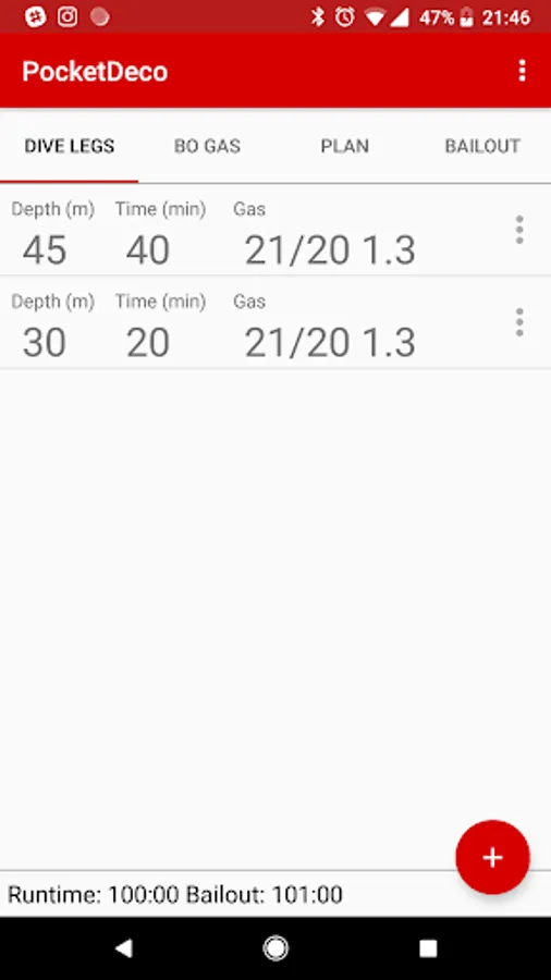 Calculates open circuit and closed circuit rebreather (CCR) plans for SCUBA diving, including gas consumption, gas density, bailout plans, ppO2 (partial pressure of oxygen) and END (equivalent narcotic depth).