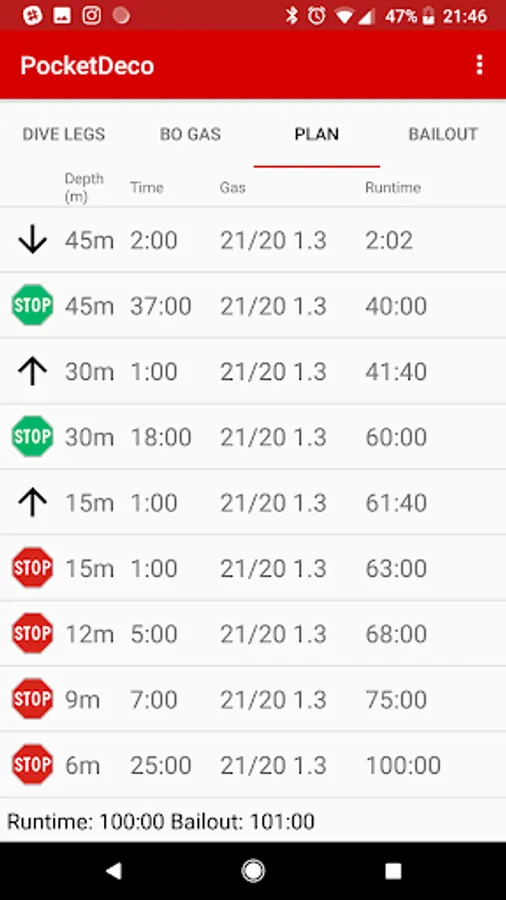 Calculate and plan multi-level, multi-gas decompression dives, using Buhlmann ZHL-16C with Gradient Factors.