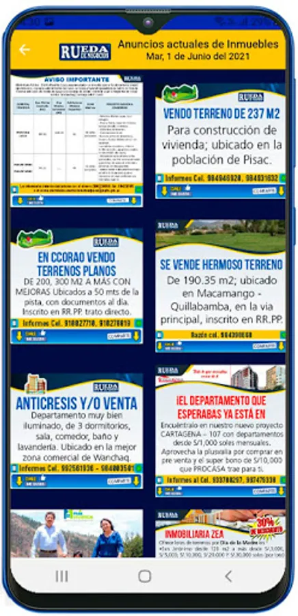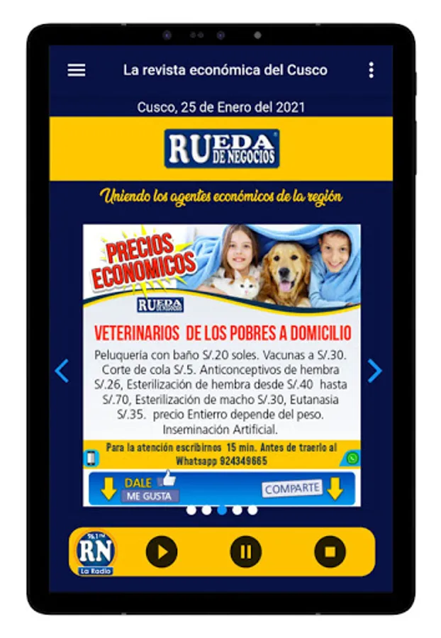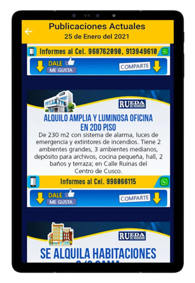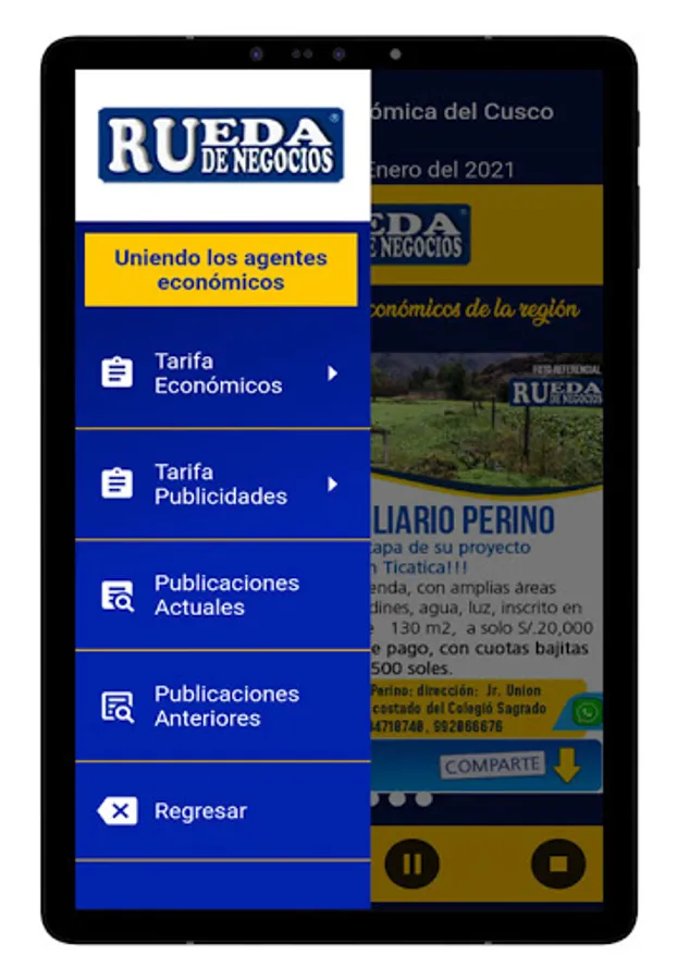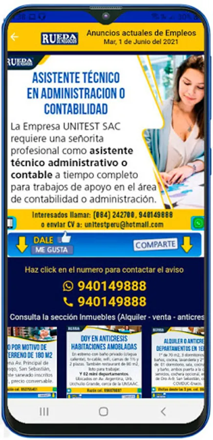 Jobs, work, rentals, sales, apartments, houses, land, offices, premises, transfers, businesses, cars and all the economic notices of Cusco in your magazine Rueda de Negocios.