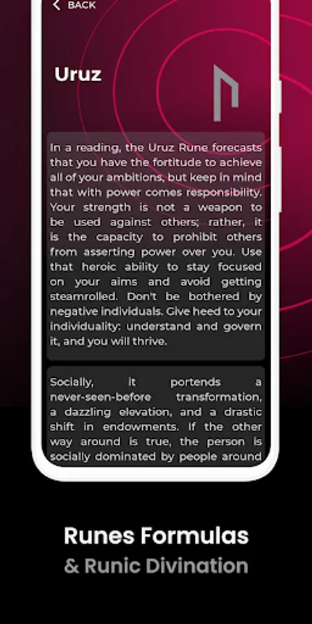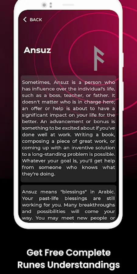 👉 Each rune has a detailed backstory and interpretation. Runes app has placed a strong emphasis on a comprehensive, in-depth, and dynamic interpretation of each Rune's significance and impact on one's personal, professional, and other aspects of life.