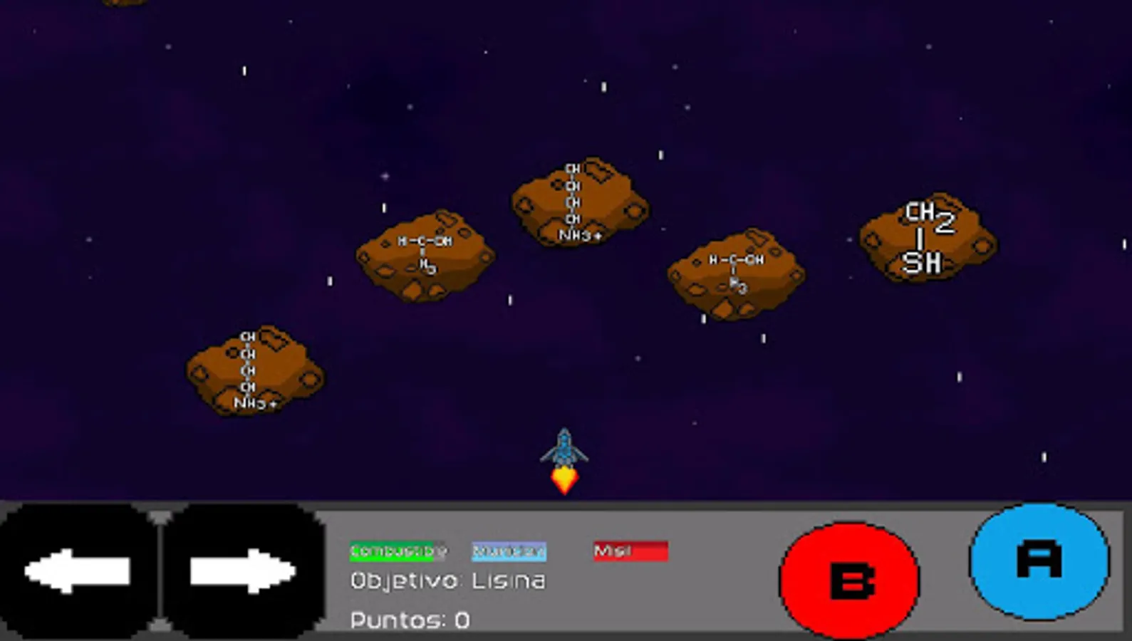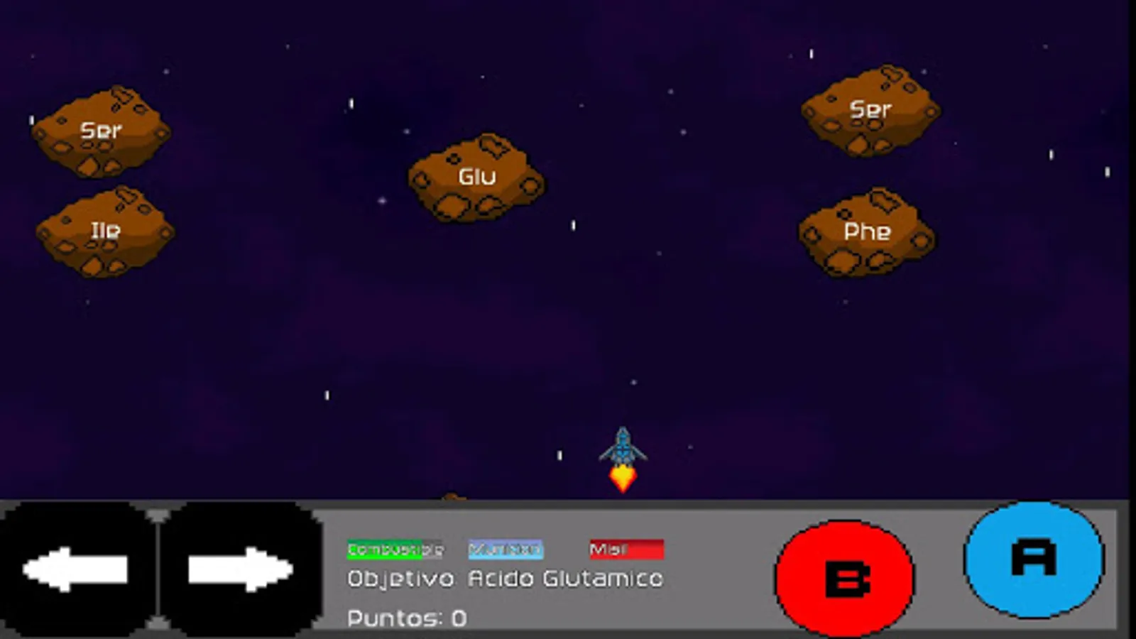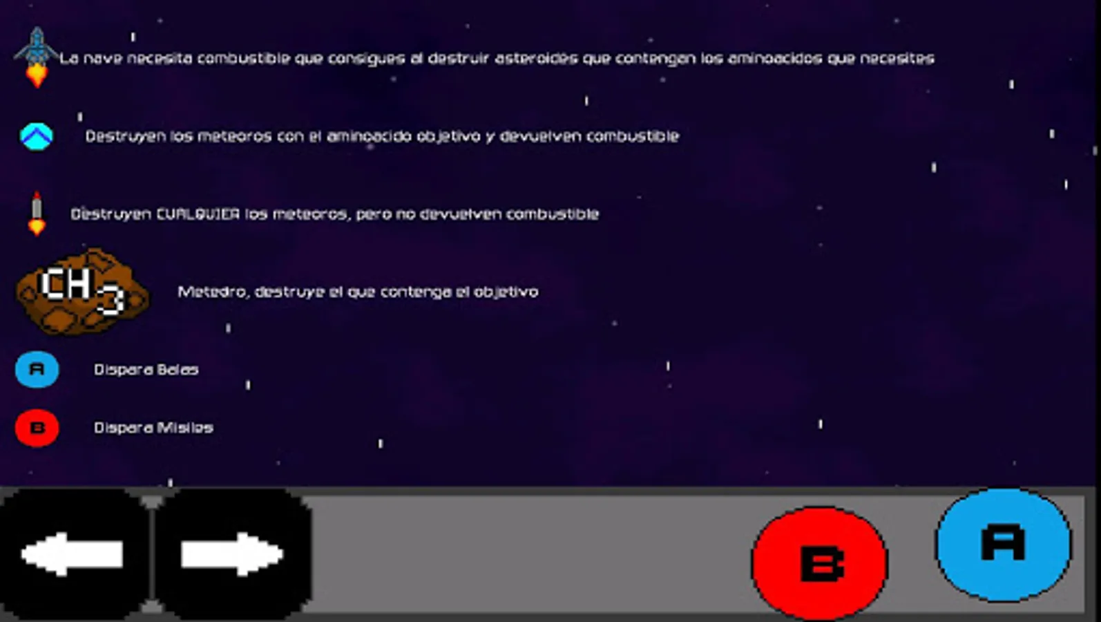 You have only one mission; destroy the meteorites with the correct amino acid so that your ship can use them as fuel, use your missiles when you are in trouble and try not to waste them (it takes a while to load).