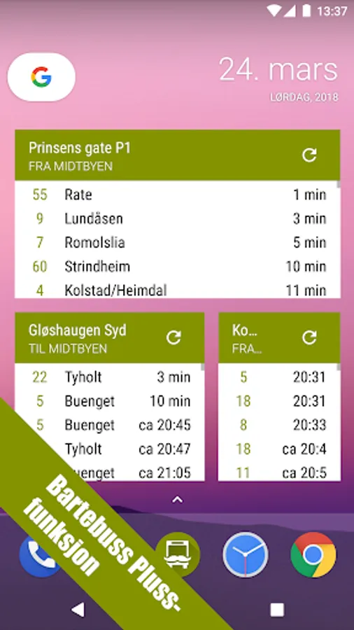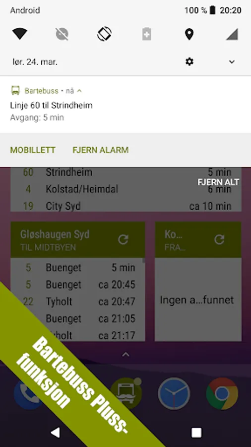 - Ask the bus link in free text, eg. "When does the next bus from Lade go?" (Only Trondheim).