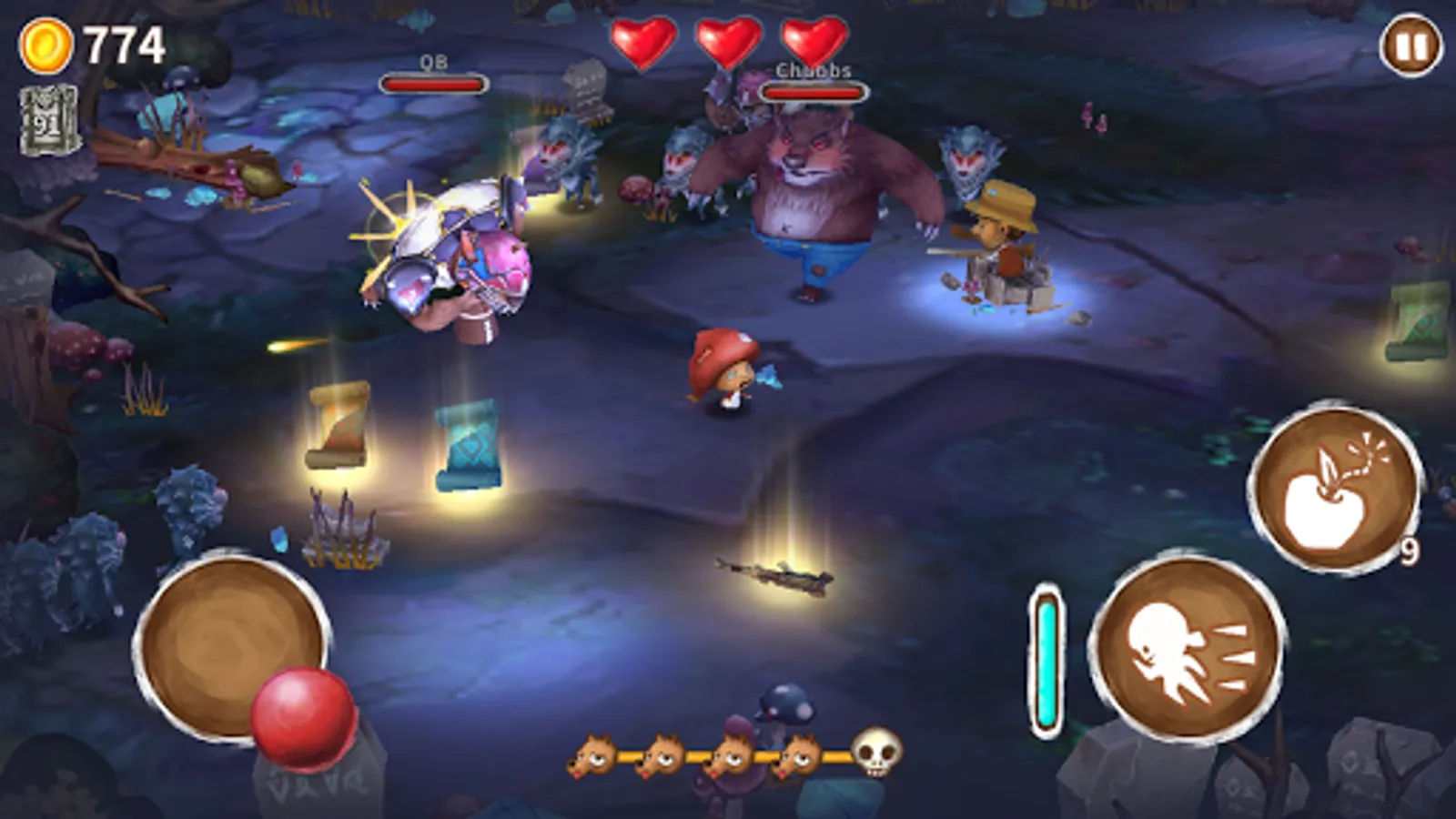 Fairy tale comic art style in a run and dodge survival game! Tons of wolves with a variety of attacks will challenge your reflex and ability to keep Red safe! Clever and smart usage of items along with the help of the hunter and other forest friends will help Red fend off the wolves. Run and keep on running to keep Red safe!