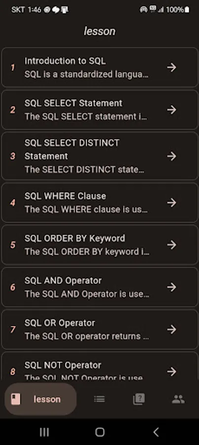 Are you eager to unlock the power of databases and SQL programming? Look no further! "Learn SQL with SQLite" is your comprehensive guide to mastering SQL using the popular SQLite database engine. Whether you're a beginner or an aspiring database administrator, this app is designed to make your SQL learning journey enjoyable and interactive.