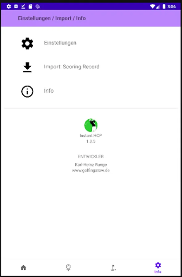 Instant HCP is an app that you can use to quickly determine if and how your handicap will change after a round of golf. You don't have to wait for the tournament evaluation. When you enter your score, you will immediately receive the newly calculated HCP. This does not require hole-to-hole input. You just enter the overall result, either as