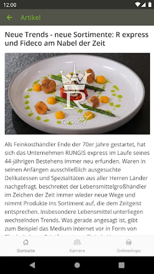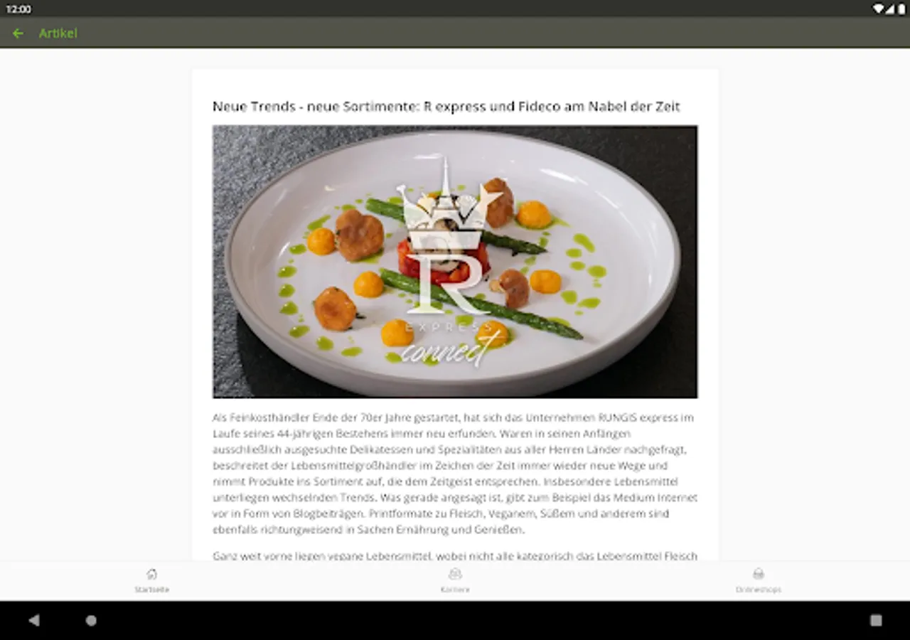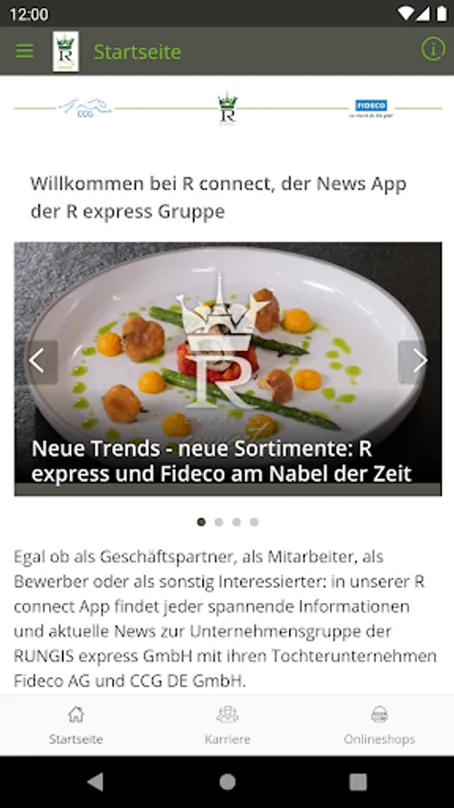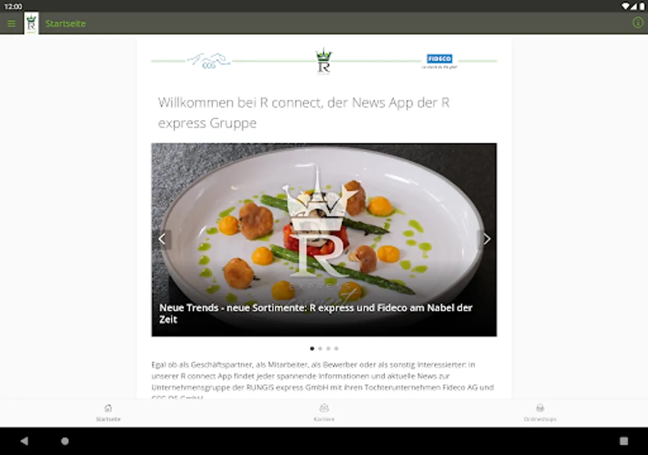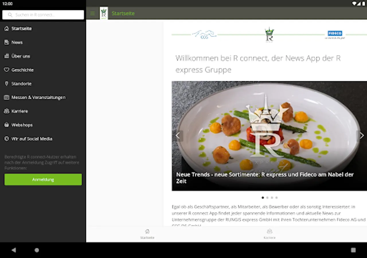 The R connect app from RUNGIS express GmbH is aimed at interested parties and employees of the premium food supplier for upscale restaurants, hotels and caterers - and all those who want to get started with RUNGIS express or its subsidiaries Fideco and CCG DE.
