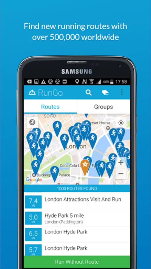 Build your own route, or select one of the 750,000 routes or verified routes worldwide, and follow a voice-guided tour, including every time there's a turn or a cool landmark, or an encouraging reminder that you're halfway there.