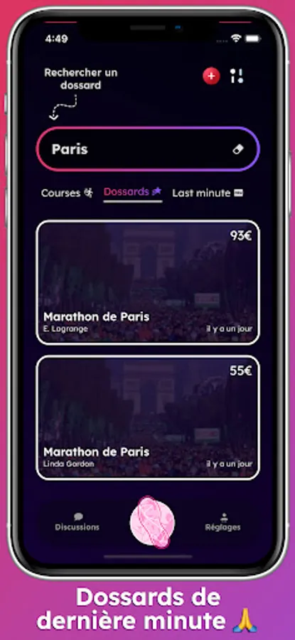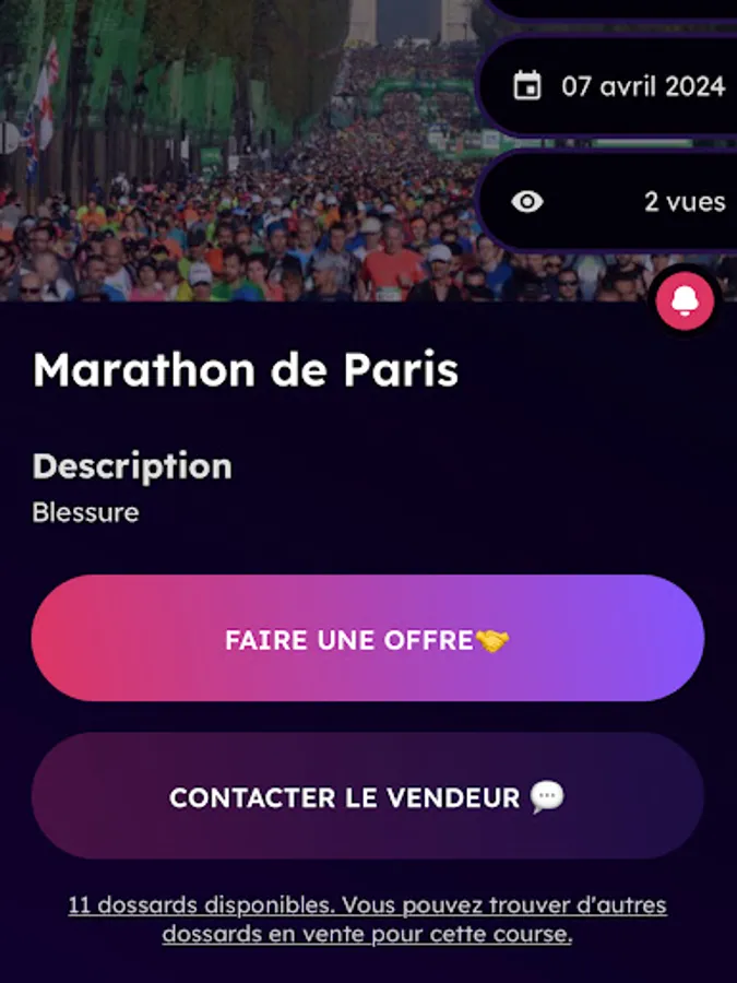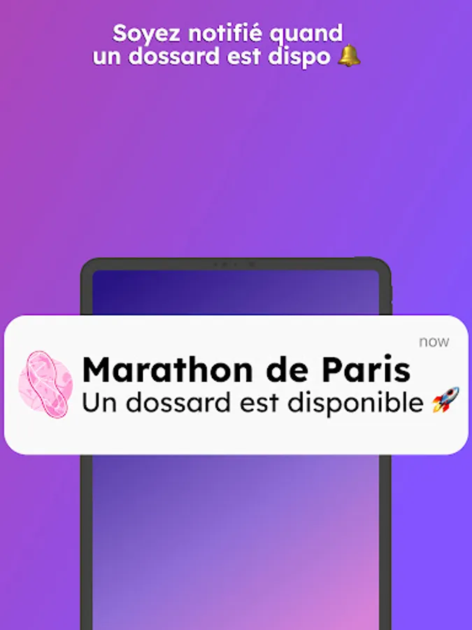 One of Runintwo's key features is the ability to receive instant push notifications as soon as a bib matching your criteria is secured. Never miss an opportunity to participate in the event of your dreams. Be informed in real time and reserve your place with just one click.