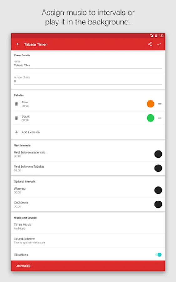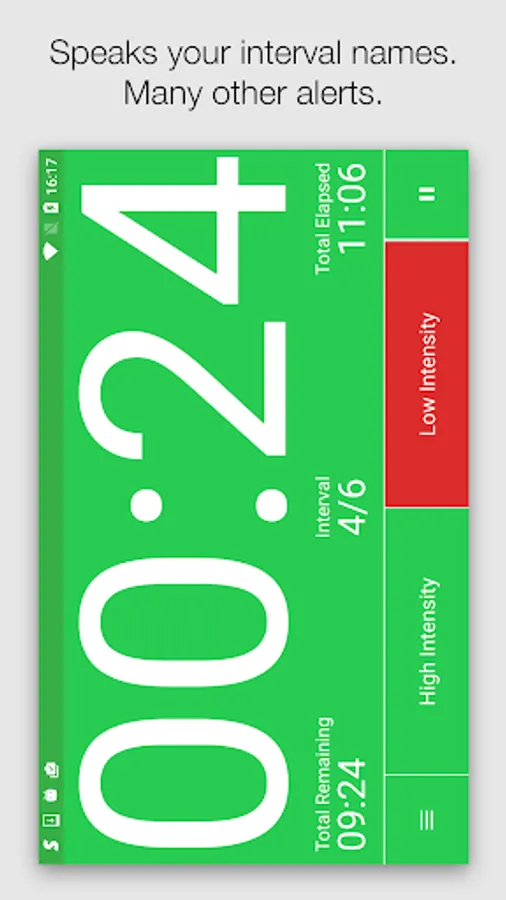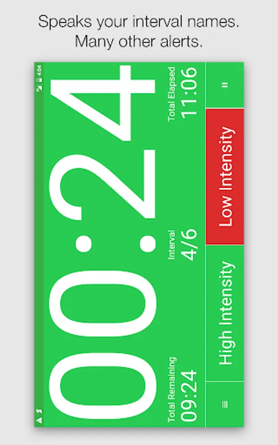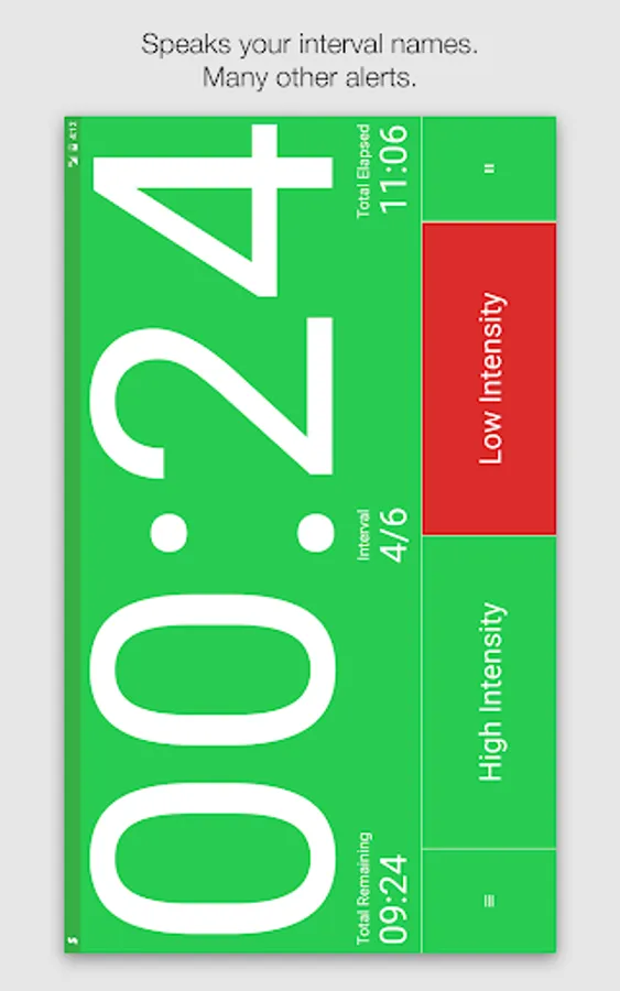 The text to speech option will speak your interval names as you get to them, or even give you some advance warning. Alternatively, you can choose from the built in alerts. These ranges from simple beeps, to MMA air horns and boxing bells, to bells and gongs for more relaxing timers.