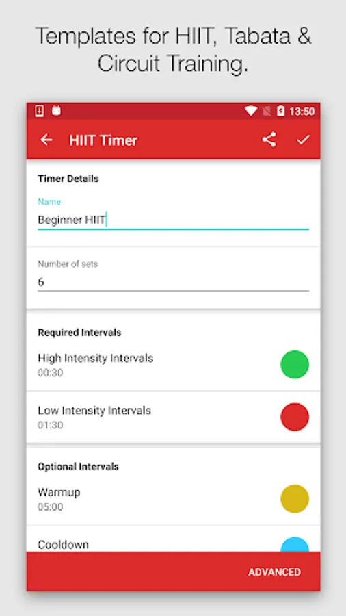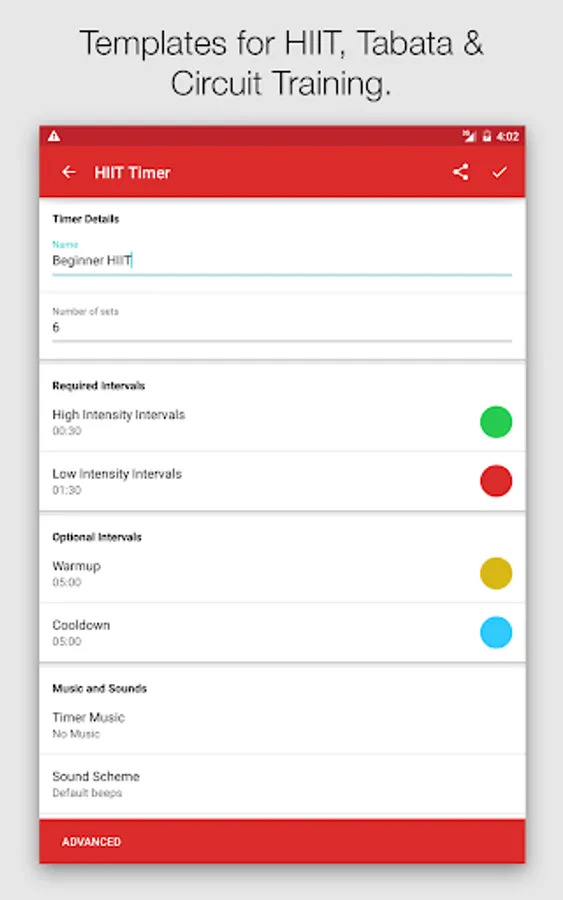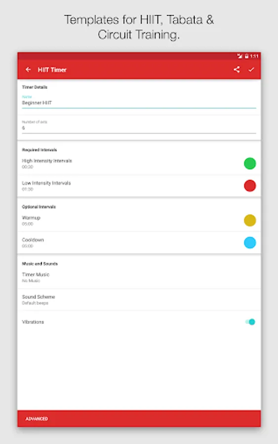 Seconds comes with templates for High Intensity Interval Training (HIIT), Tabata and Circuit Training making it very easy to quickly create a timer for your workouts. If you require more advanced options, Seconds Interval Timer doesn't let you down. You can create completely custom timers one interval at a time, or even combine timers together to create compound timers.