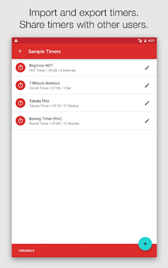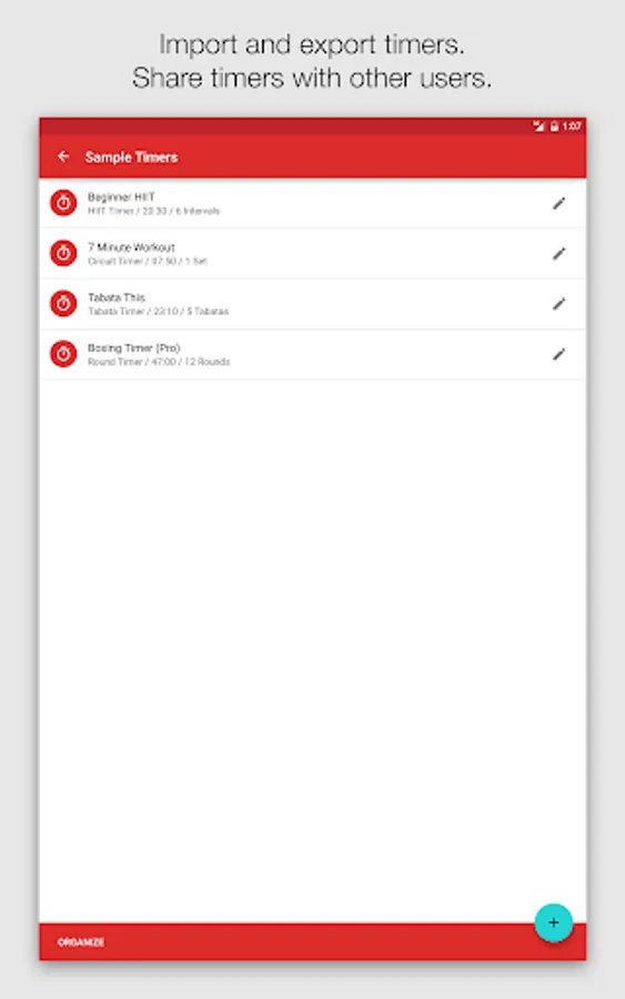 Share the interval timers you’ve created with your friends either via our companion website (http://www.intervaltimer.com) or via email attachment