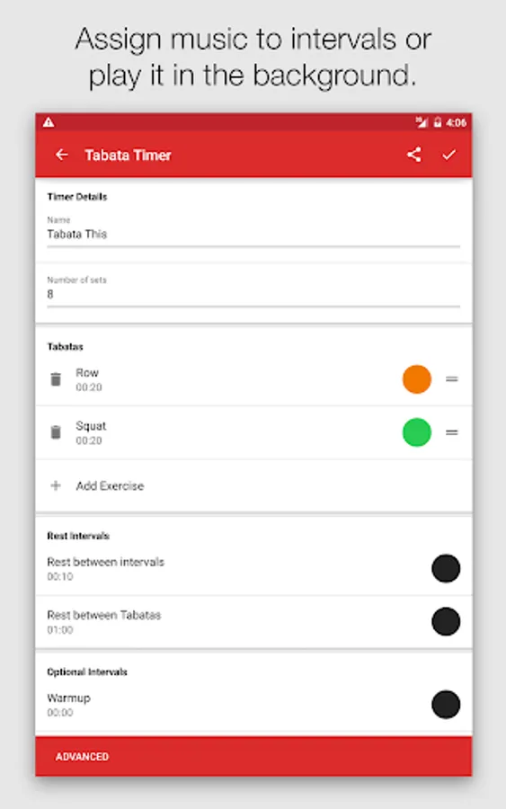 Seconds allows you to match the intensity of your music to the intensity of your workout. For each interval, you can select a song, album, artist or playlist. If this is not to your taste you can simply play another music source in the background.