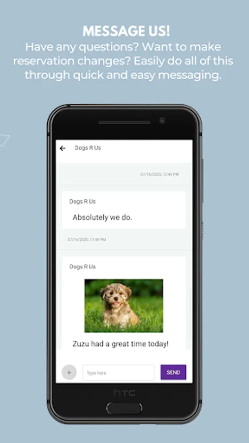 With dogs-R-us’s app, you can request a reservation for your pet, send messages, add special features and amenities, and more!