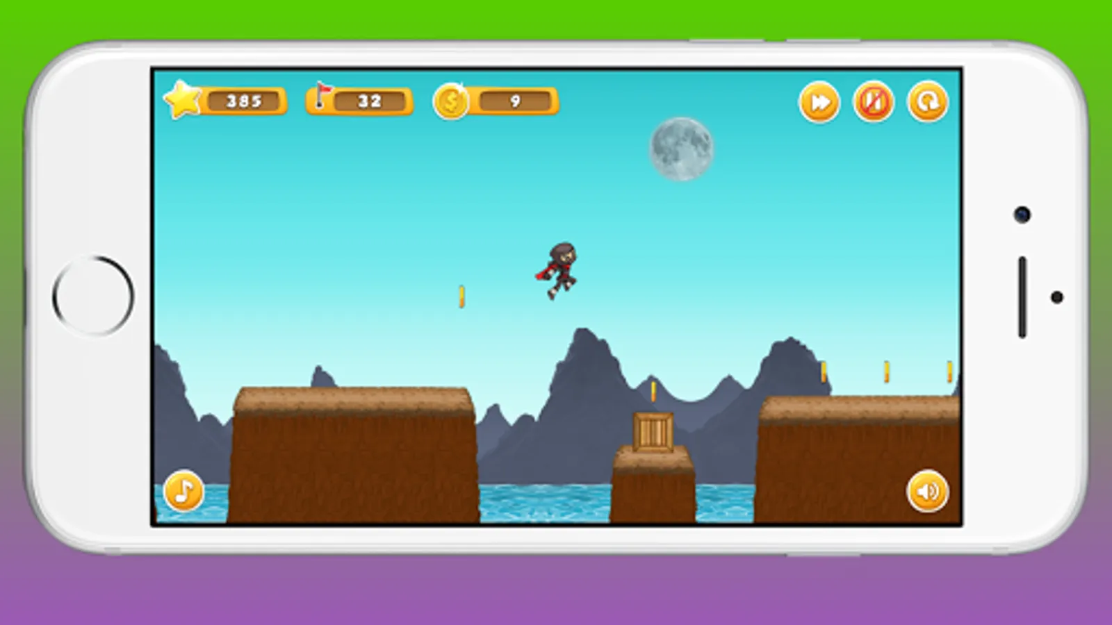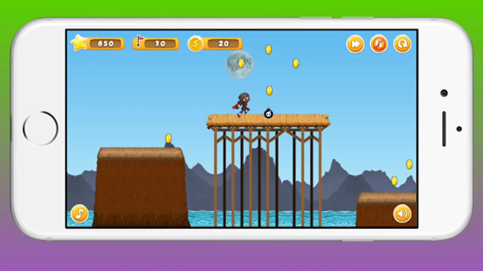 Play the running ninja game as a ninja character and try to dodge all those bombs and different obstacles Try not to jump into the water