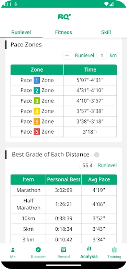 Help you evaluate the performance of your running ability(run level), knowing your own running changes, and provide the most suitable pace zone for your scientific training.