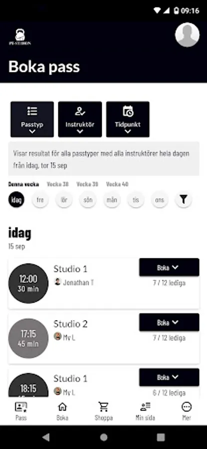 Here, as a member of the PT-Studio, you can control everything related to your training. You can book passports, courses, pt shop in the store and much more.