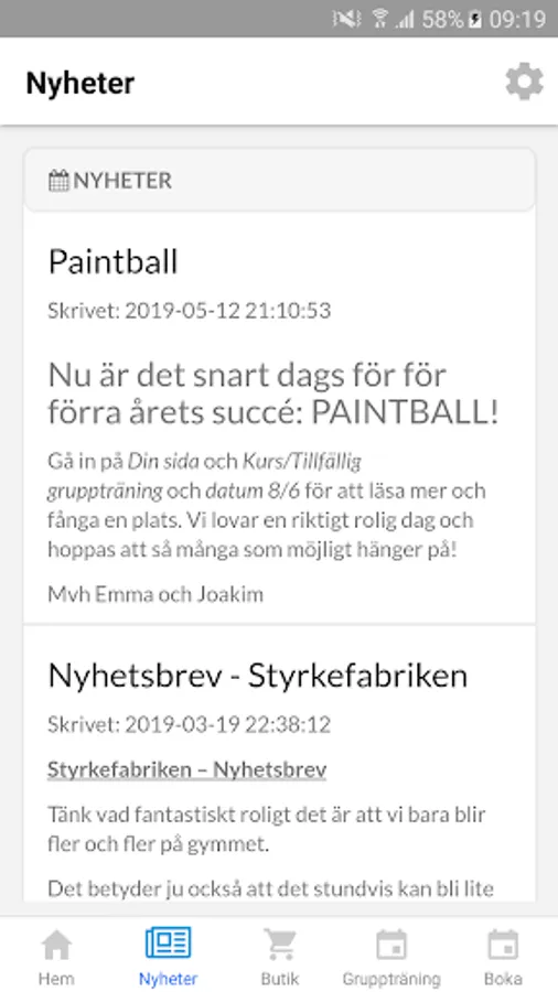 Read news about our gym activities.