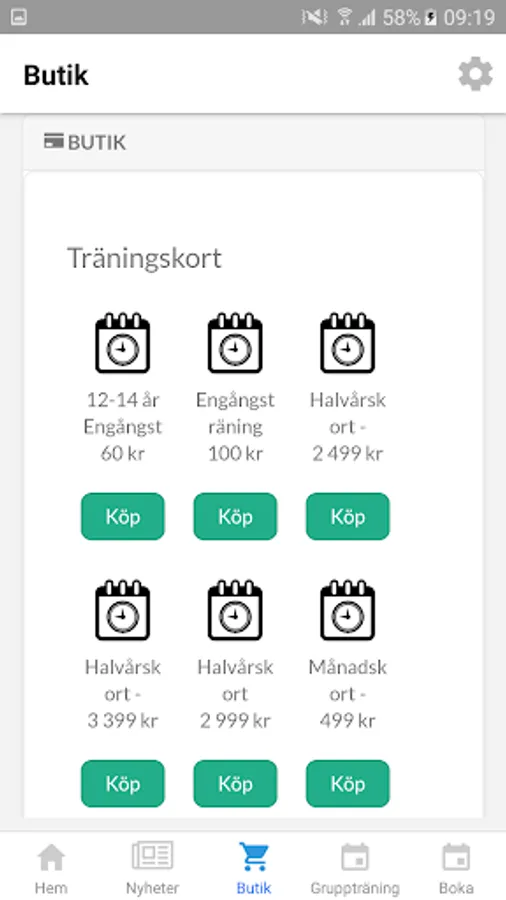 Easily buy training cards, clothing or supplements via the app's store and then pick them up in the gym's reception or self-service.