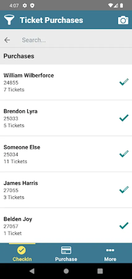 • Fast Searching - Once synced, all data is local so you can search for ticket-holders quickly by name.