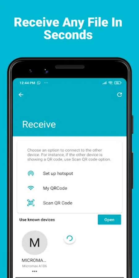 Share & transfer files between Android devices at fast & Lightening speeds without the Internet, Bluetooth or cables.