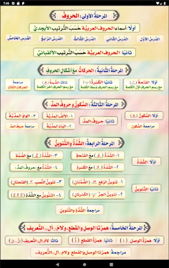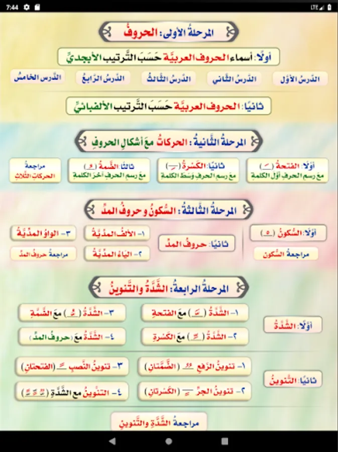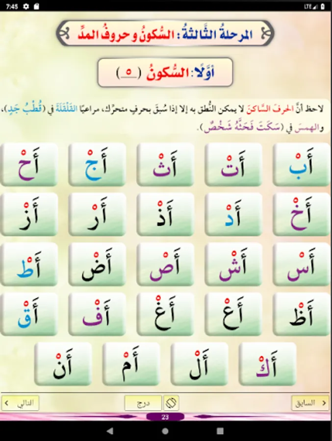 The application of the Introduction to Arabic Reading Compendium helps to train children on the correct and clear pronunciation of the letters from their correct exits, as the application contains lessons each of which contains examples with high-quality audio clips so that the child can listen to the correct pronunciation of the letter as if he is accompanied by his teacher.
