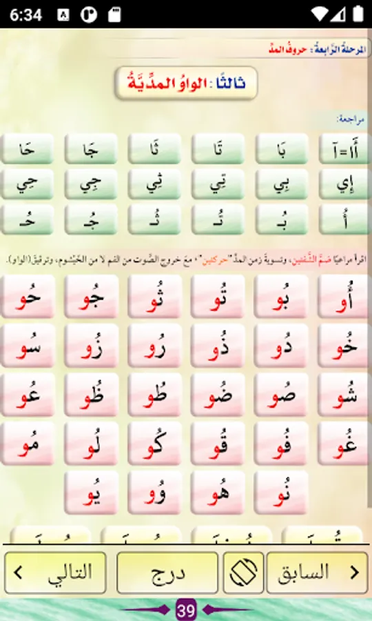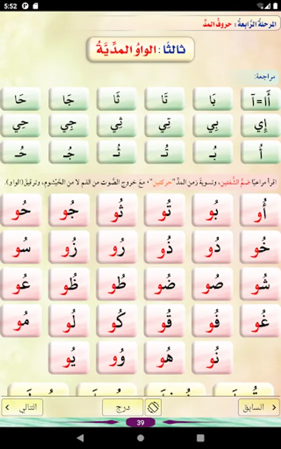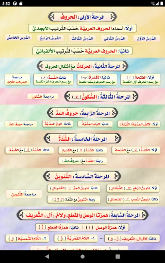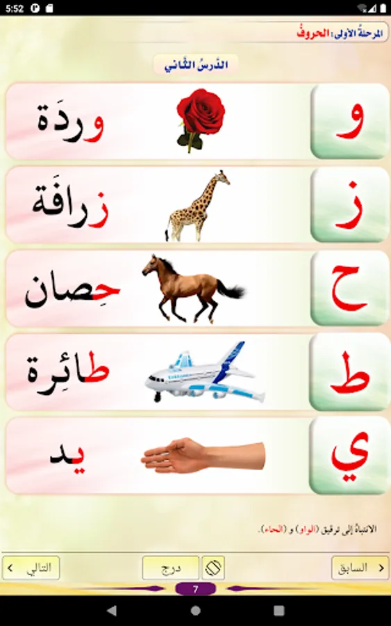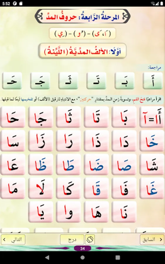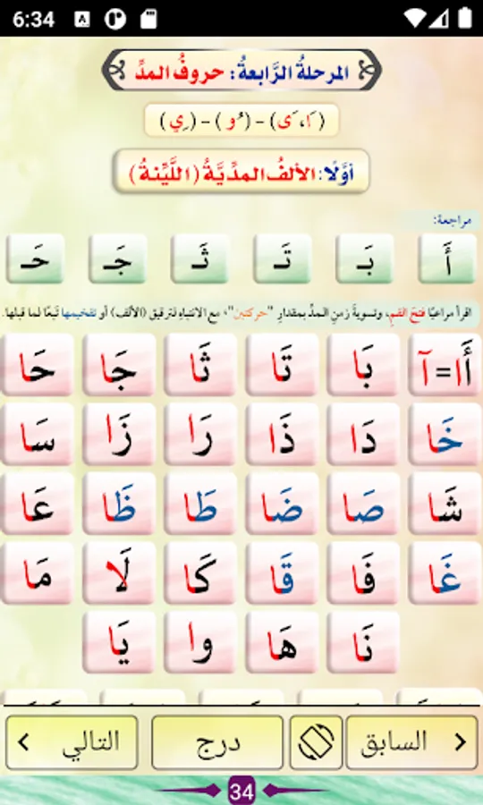The application of the introduction to Arabic reading helps to train children on the correct and clear pronunciation of the letters from their correct exits, as the application contains lessons, each of which contains examples with high-quality audio clips so that the child can listen to the correct pronunciation of the letter as if he is accompanied by his teacher.