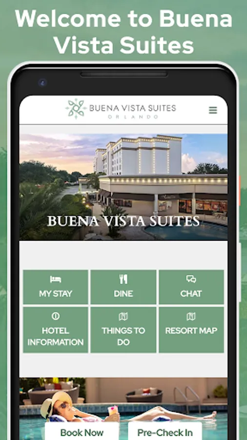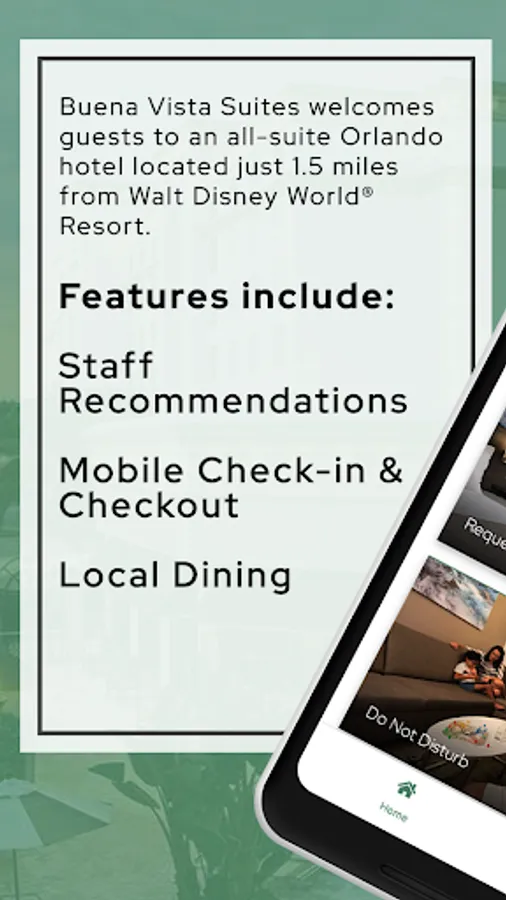Welcome to the Buena Vista Suites’ Digital Guest Experience app, connecting you to a wealth of information and services available conveniently on your mobile device to seamlessly guide your journey at Buena Vista Suites Orlando. Communicate with our team via chat, view restaurant menus, check out the Disney shuttle schedule or access the resort services directory – whether you are on property or exploring the theme parks – it’s all at your fingertips.