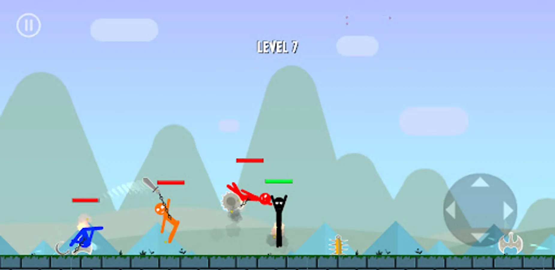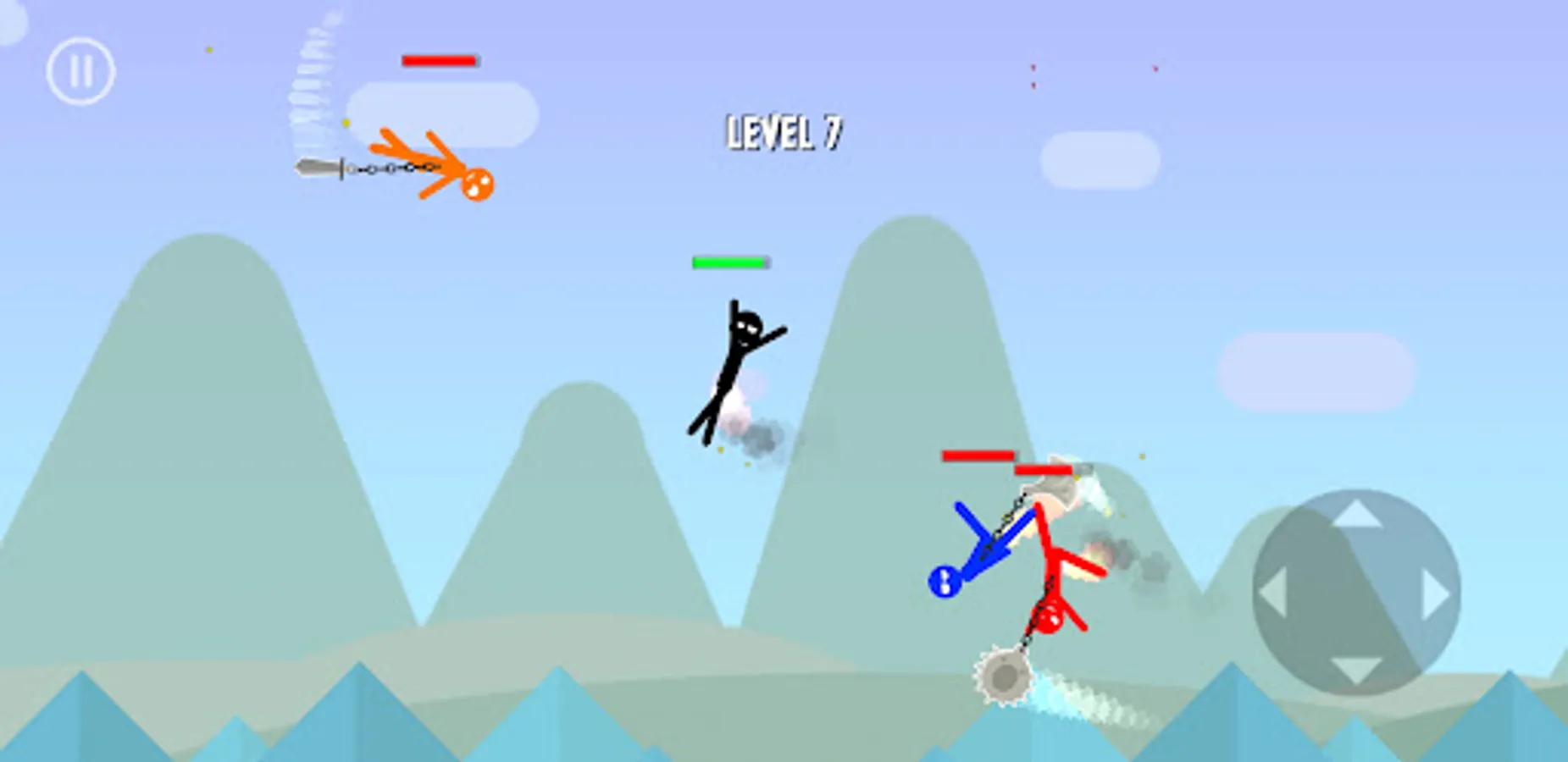 The rules are easy: by moving the stick, you point to the stickman during which direction to fly through stage . Move in 4 planes, use physics to spin the weapon in your hands, and cause maximum damage! just in case of danger, you'll always throw an object in your hands at the enemy to end him off!