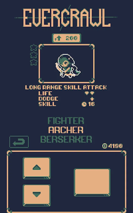 EverCrawl is a very challenging and punishing game however gold collected in each run persists and can be spent to unlock and upgrade classes and items to give you an edge for the next runs! Persist and Prevail!