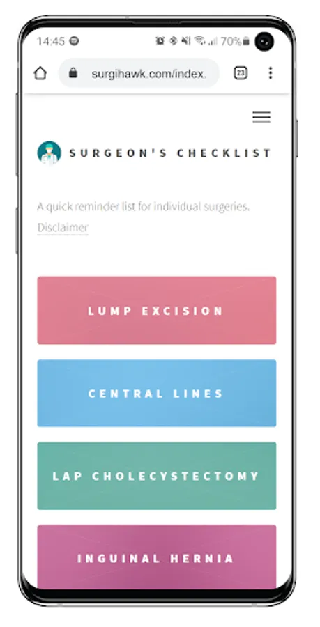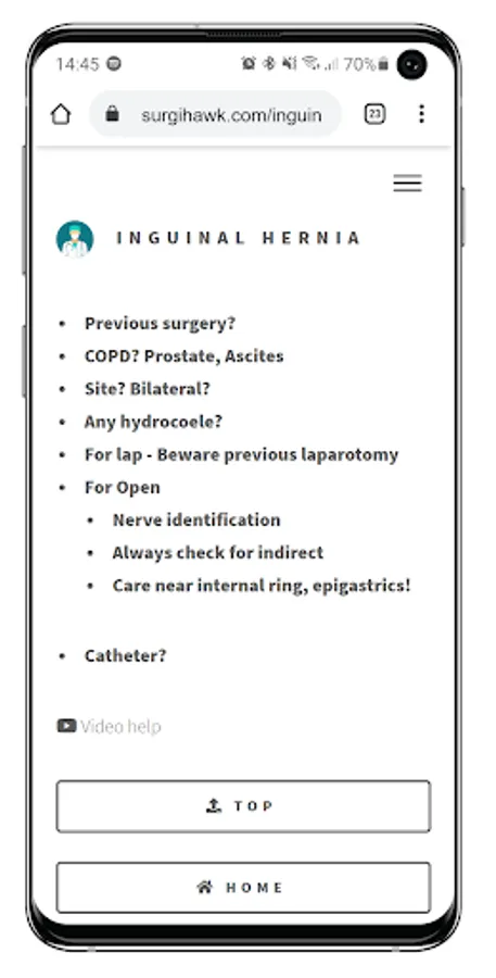 This is an aid and not a manual for surgery. This is not a substitute for clinical experience or judgment. Clinicians should make their own patient-specific decisions. Individual patient conditions and contraindications take priority over any suggestions or tips mentioned in this app. The author accepts no liability arising directly or indirectly out of the application of this app. While every effort is made to ensure relevance and applicability, it is the responsibility of the individual clinician to make decision appropriate to the individual patient’s clinical condition. Guidelines as relevant to individual country’s health system and local healthcare guidelines take priority over the mentioned tips and advices.
