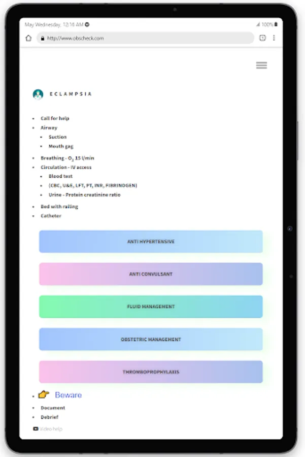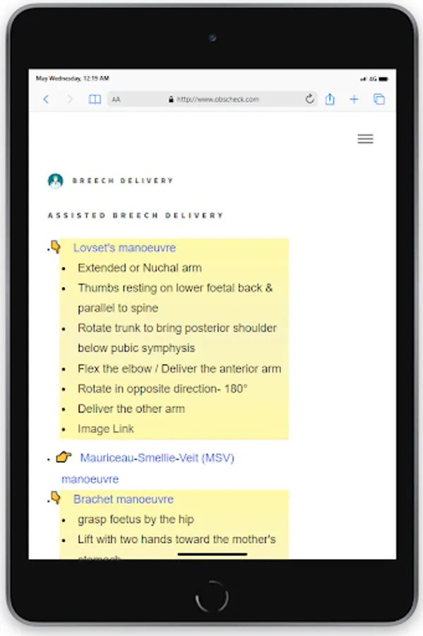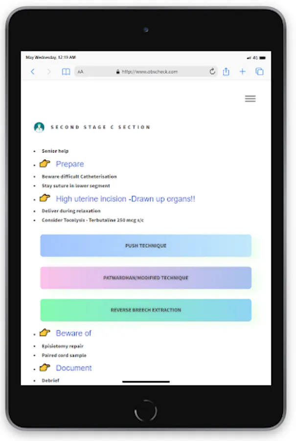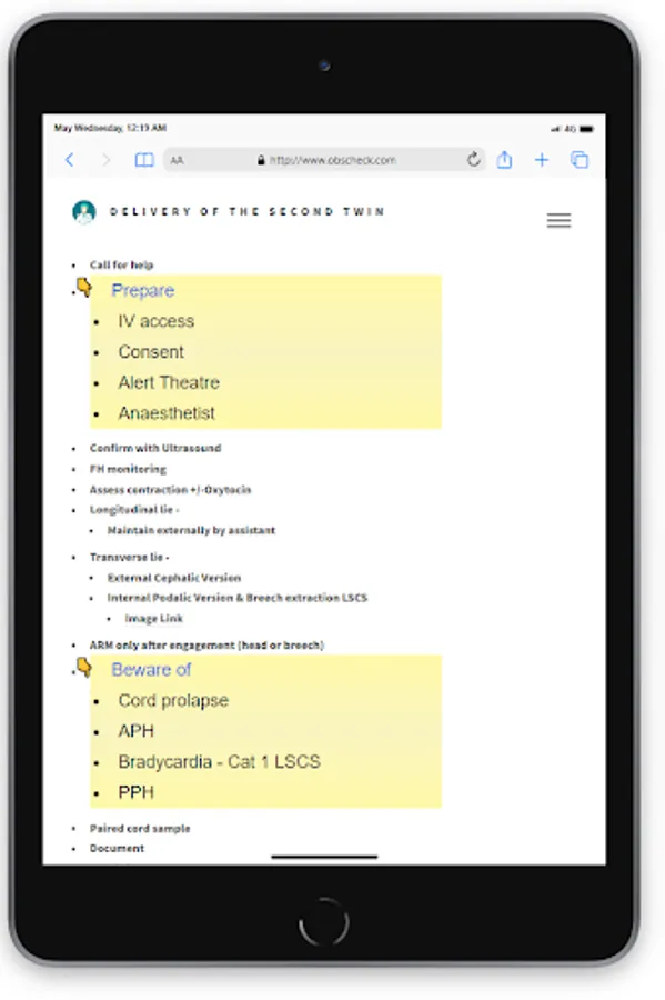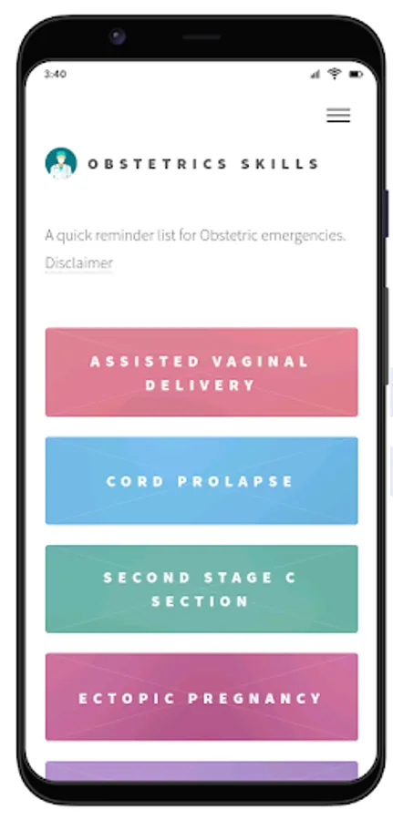 This app is intended as a quick memory aid for the obstetric trainees and NOT as a definitive reference material. The app is intended for use only in English speaking countries.