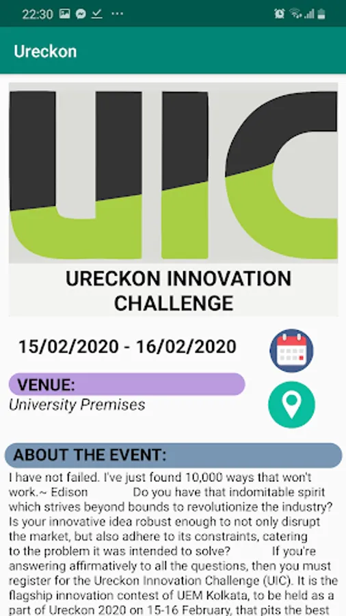 University of Engineering & Management, Kolkata is organizing it’s very own techno-management festival “URECKON”. A seed which was planted in 2019 has already turned into a steady success with it’s roots buried deep into the tradition of excellence upheld by the University. Every year, we aim to make it Bigger and Better. Students and tech enthusiasts from various parts of the world are wholeheartedly invited to be a part of this budding Techno-Management fest, not only to show case their talents but also considering it as a field to learn something new.