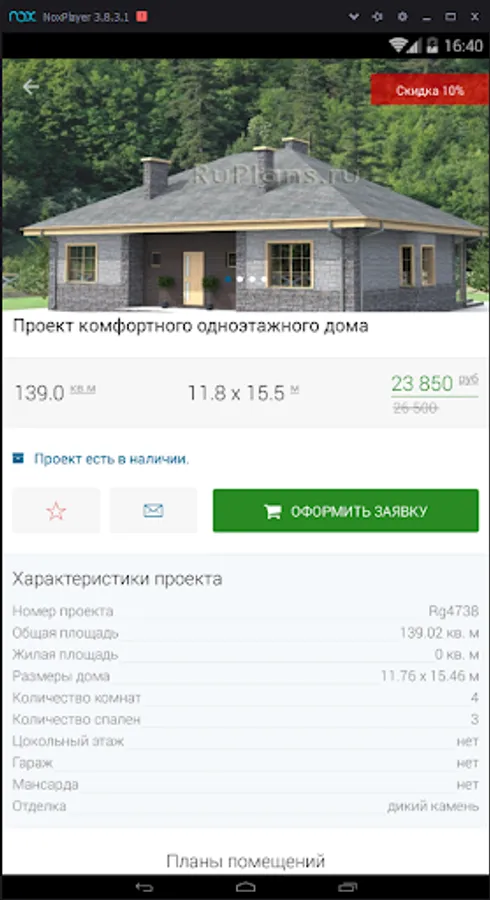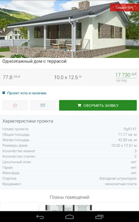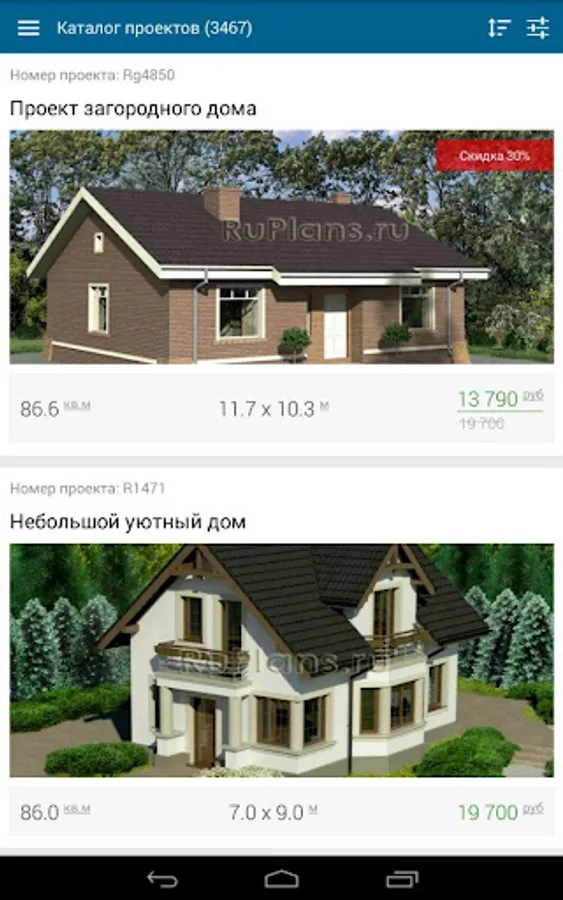 "Projects RuPlans houses" - is a mobile application that gives the most complete picture of the projects of country houses, cottages, as well as all the necessary information for the construction.