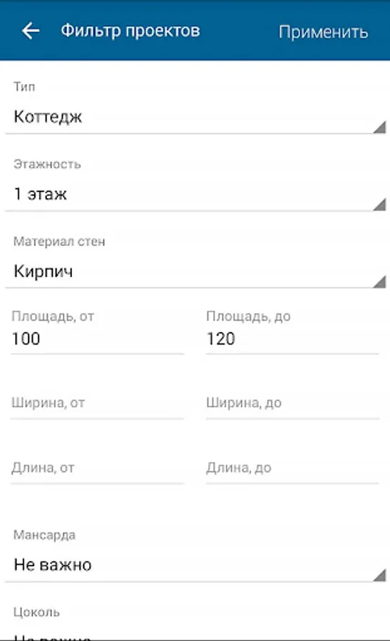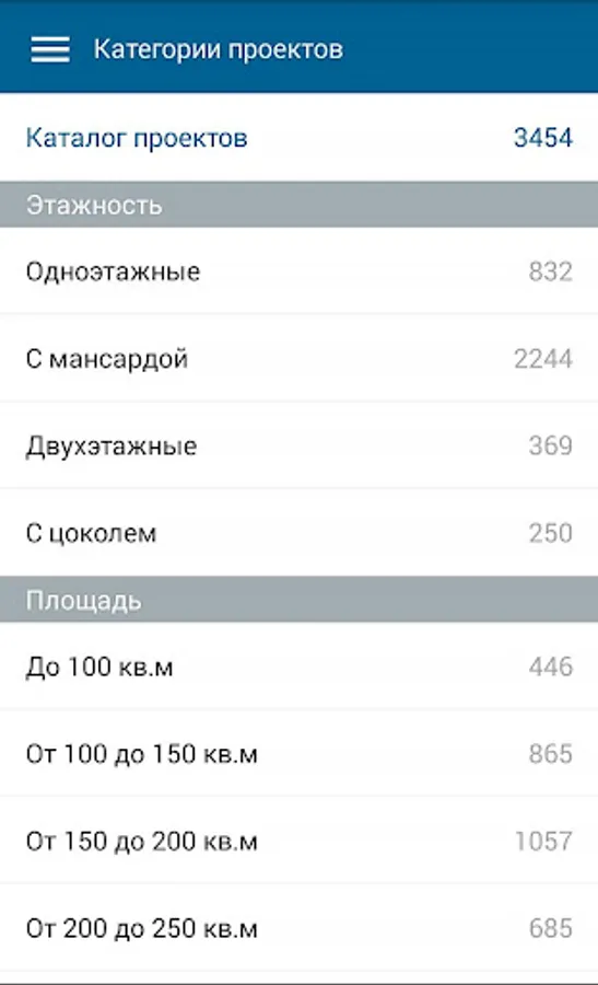 Projects of houses sorted by popularity, newness, area, number of floors, walls and materials, etc. Convenient filters allows you to select the most appropriate design.