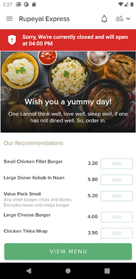 We aim to provide fast food for all our customers with high quality food at respectable prices.