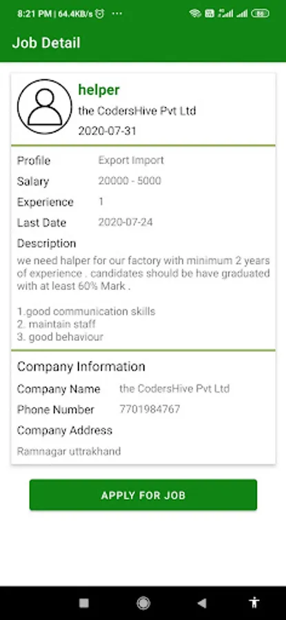 यह एक बेहतरीन मंच है जहाँ उत्तराखंड के लोग अपनी प्रोफाइल के अनुसार नौकरी पा सकते हैं, हम निम्न से लेकर उच्च शिक्षित जैसे कई प्रकार की श्रेणियों का समर्थन कर रहे हैं। नियोक्ता आसानी से नौकरी पोस्ट कर सकते हैं और कर्मचारी अपनी पोस्ट की गई नौकरियों पर आसानी से आवेदन कर सकते हैं। और नियोक्ता और कर्मचारी दोनों एक दूसरे से चैट कर सकते हैं।