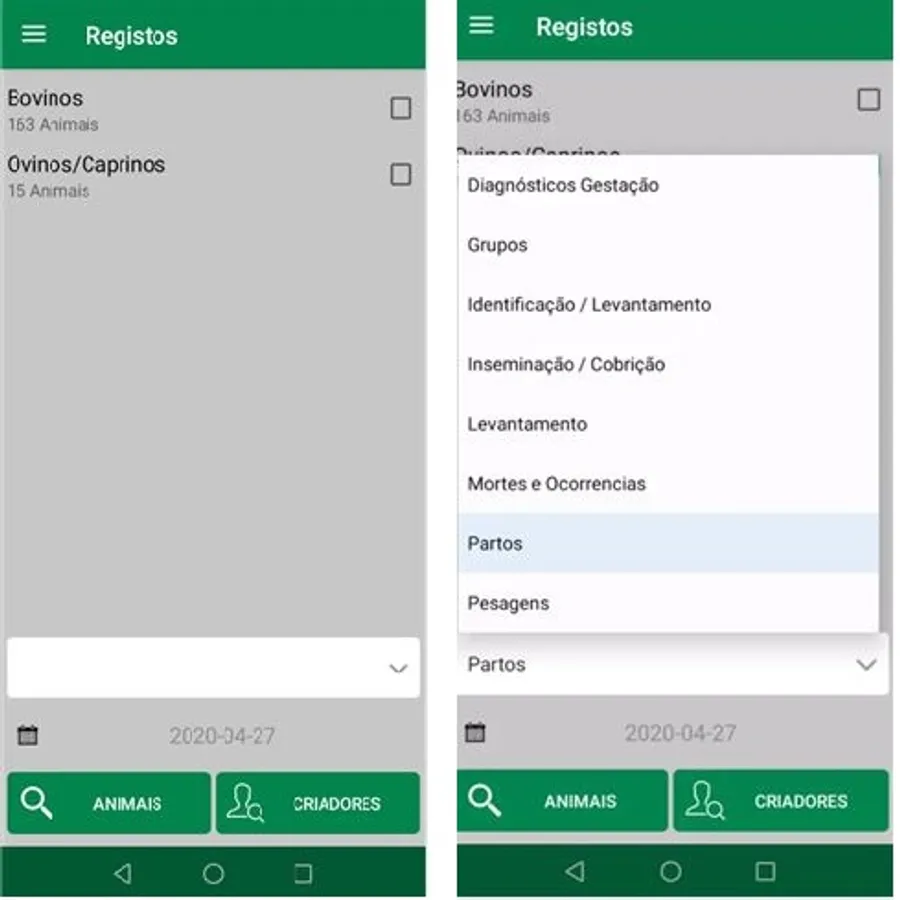 Tasks can range from simple data collection operations to more complex operations that imply the existence of a plan, with animals planned and, consequently, the possibility of verifying in the field which animals are made and which are missing.