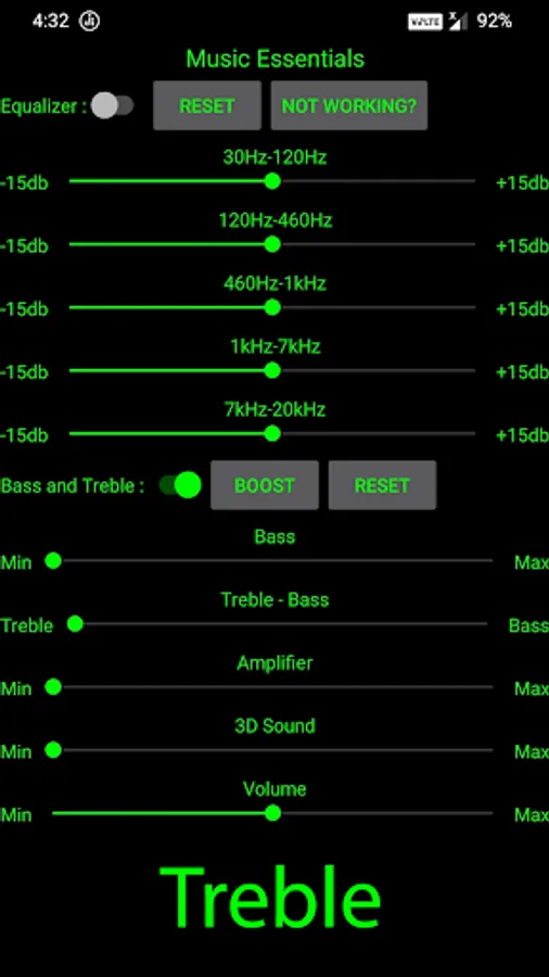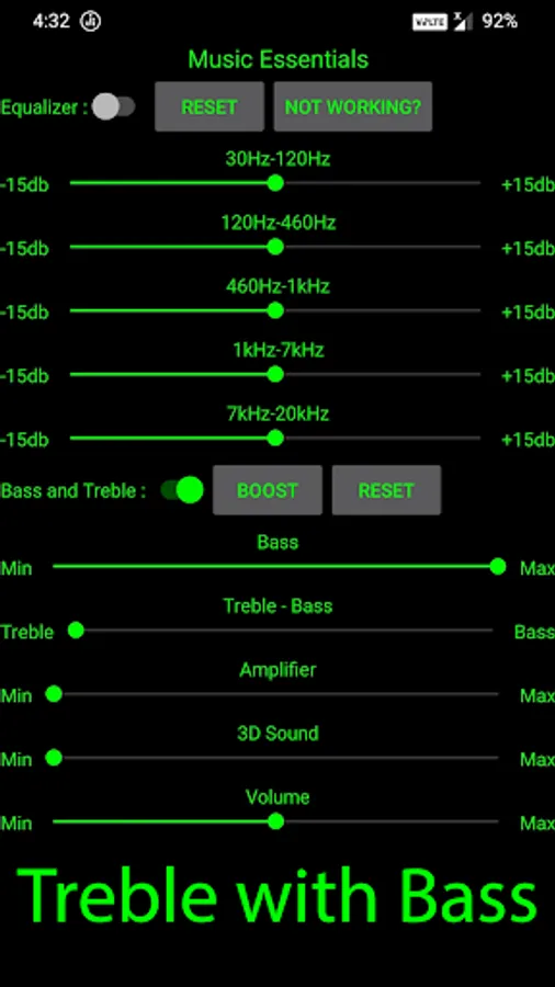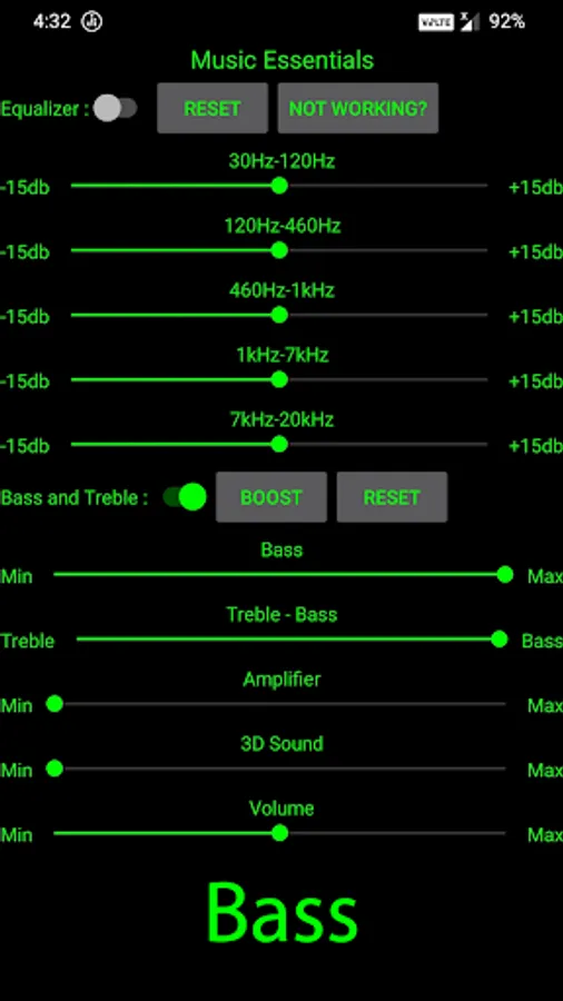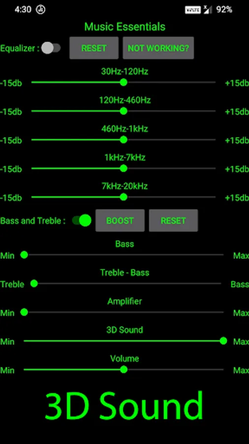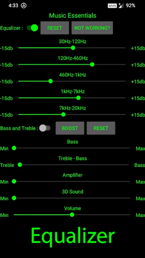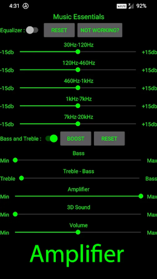Music Essentials Provides Powerful Five Band Equalizer, Bass, Treble combined with Bass, Treble, Amplifier, 3D Sound and Volume Control.