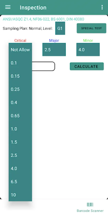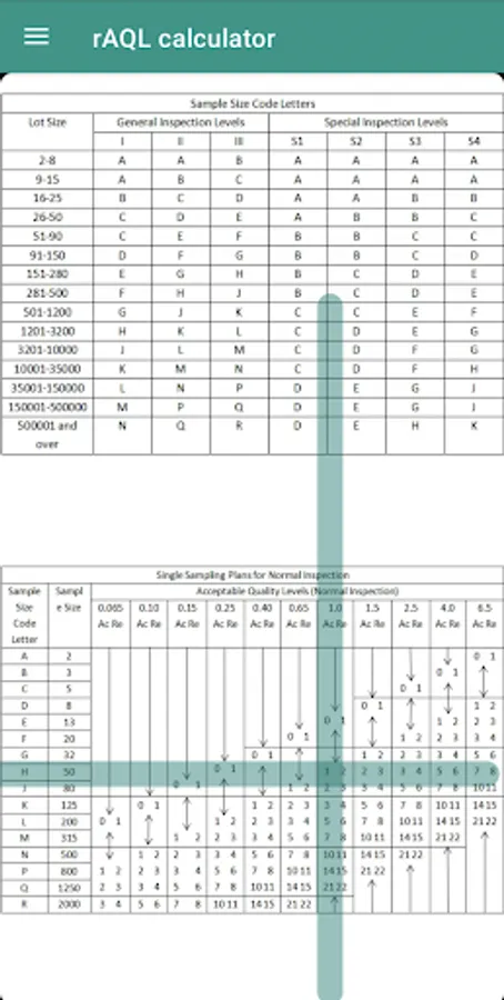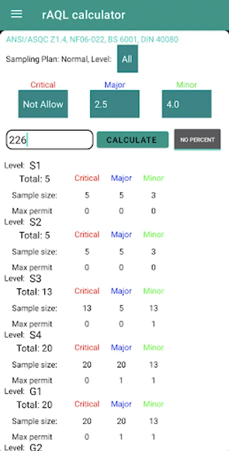 You can calculate the number of AQL samplings in levels S1, S2, S3, S4, GI, GII, GII and based on the allowable percentage of critical errors, major errors, minor errors with common percentages from 0.1 to 10