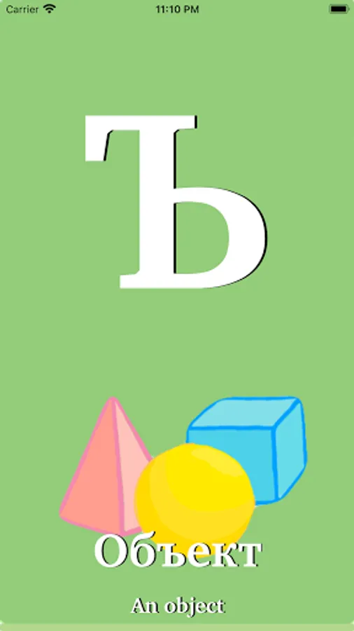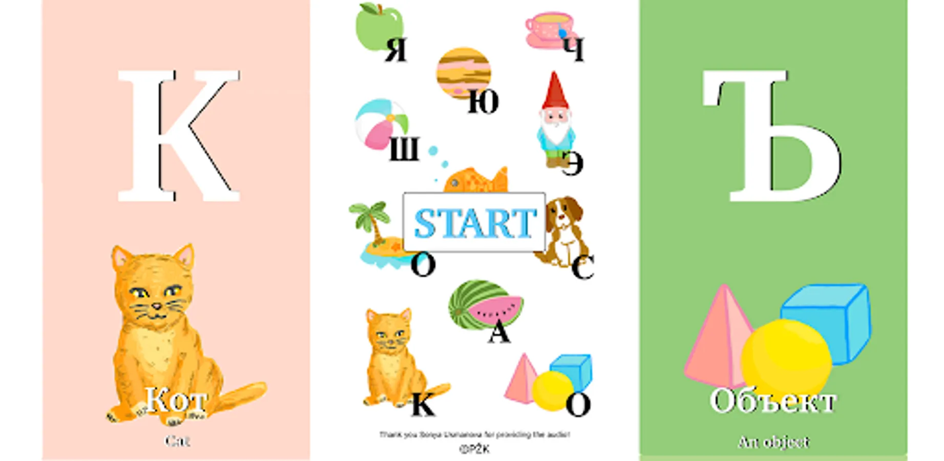 The app Russian ABC consists of 33 letters (with audio) found in the Russian alphabet. For each letter there is also an example word and each word has a background picture related to it!