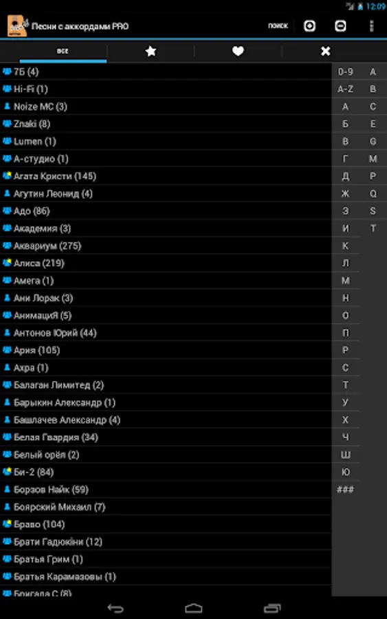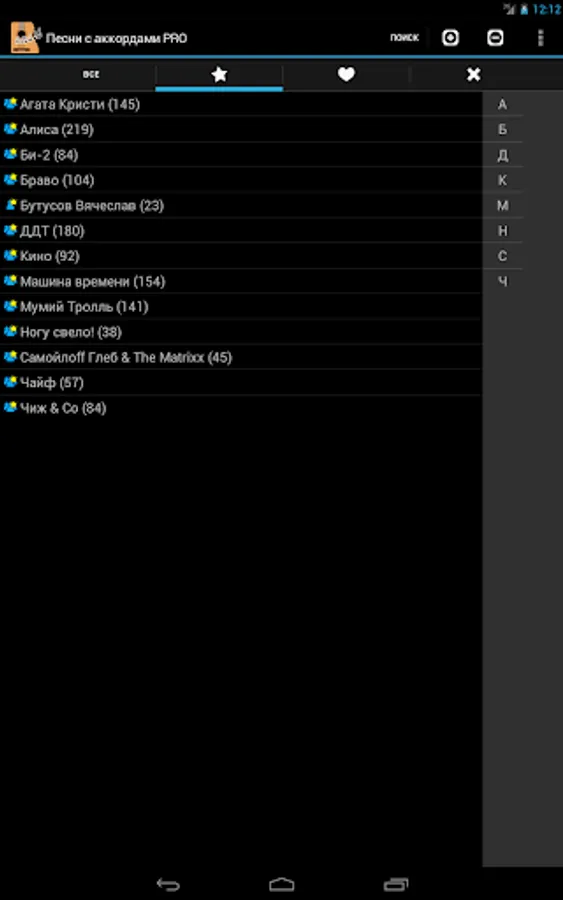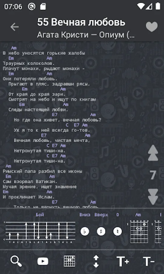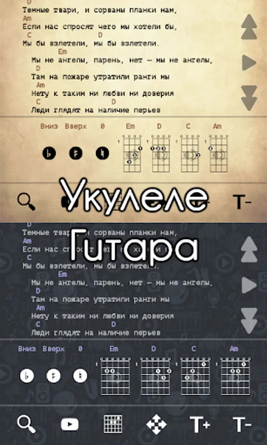 - more than 8300 lyrics (in Russian, Ukrainian and Belarusian) with chords for guitar and ukulele