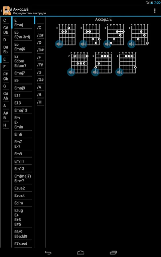 - support for 3 types of ukulele (soprano, baritone, D-tuning);
