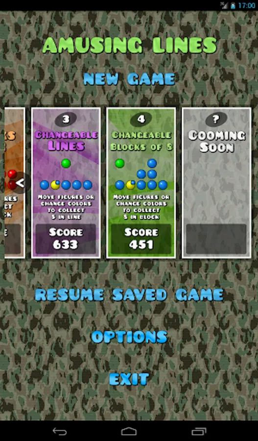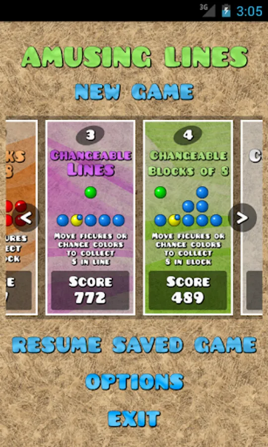 Amusing Lines is a logical puzzle game with original idea to change colors of figures. The goal is to get as much points as you can, cleaning figures from table. It contains 5 different games: