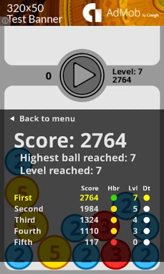If you clear the screen, you get extra time, the difficulty level increases and a new set of balls falls.